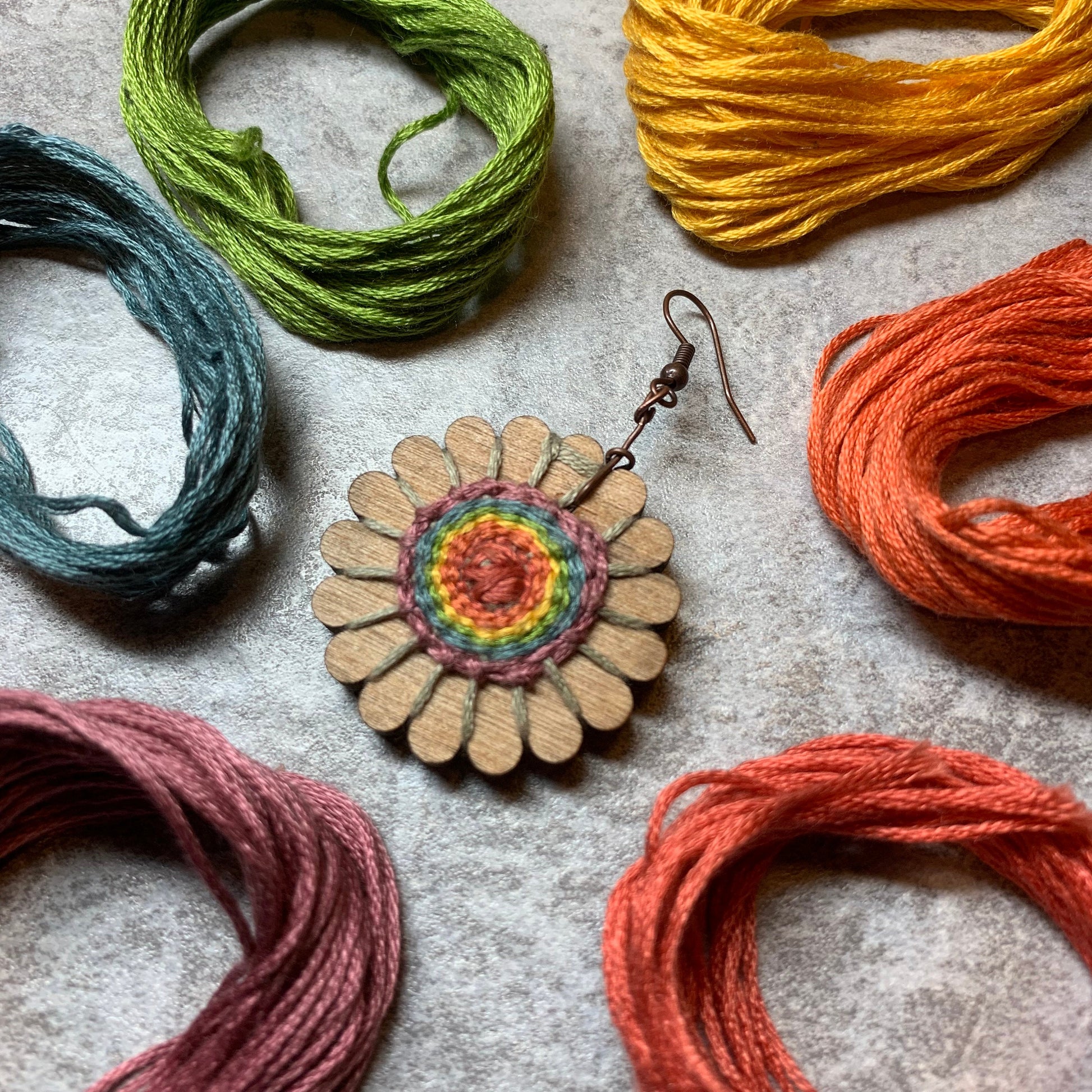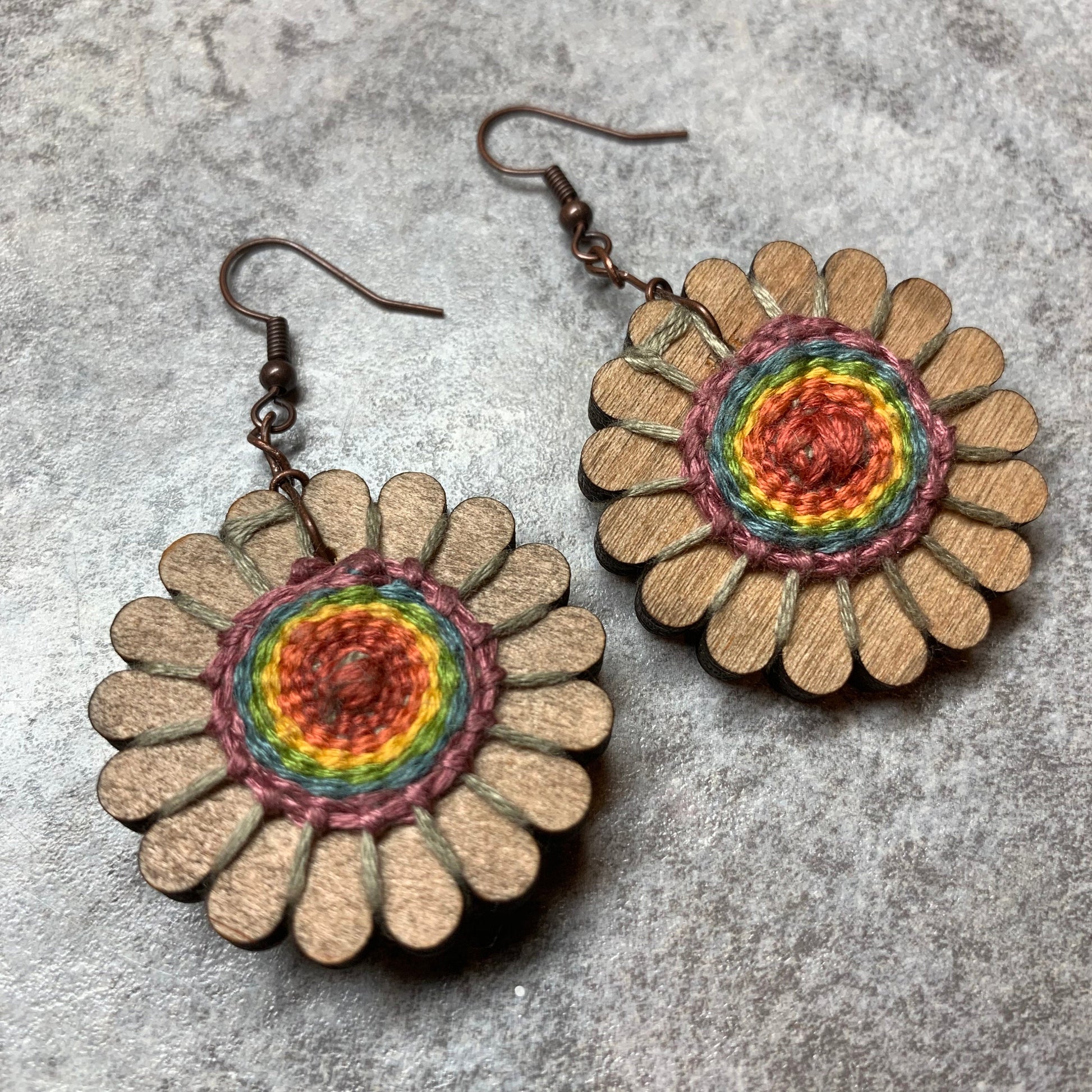 Please note that you can order completed earrings through this listing. The rainbow earrings in the photos are samples of what a completed weaving looks like. If you are interested in purchasing earring looms with a completed weavings on them, please select up to five colors to be used to create your order.